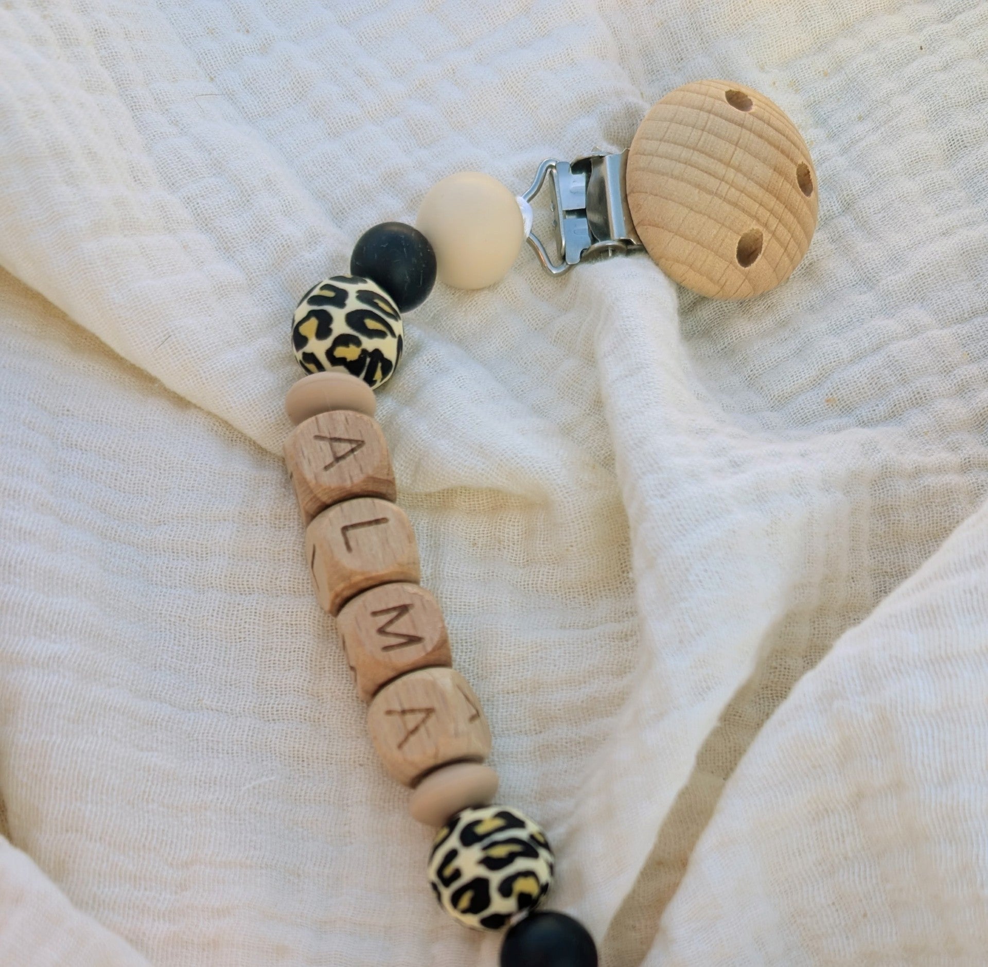 L'attache tétine en perles de silicone motif Léopard assure que la tétine de votre bébé reste toujours à portée de main. Facile à nettoyer à l'eau, elle combine praticité et hygiène pour accompagner votre enfant en toute sécurité.