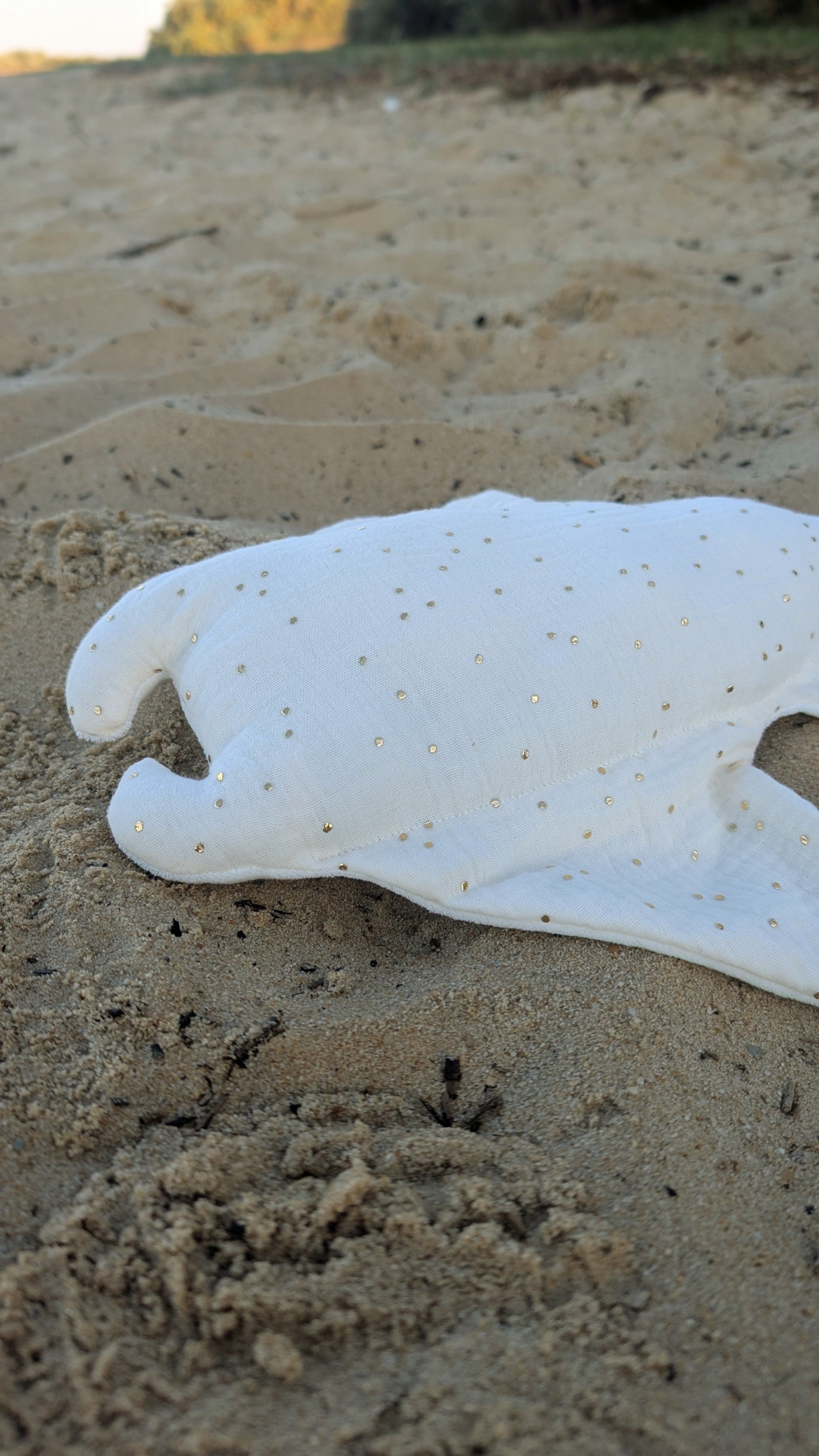 Camille la raie Manta, venue tout droit du bassin d'Arcachon, offrira à votre tout-petit une douceur tendre et réconfortante. Parfaite pour apaiser et câliner, elle devient rapidement un compagnon de confiance pour les moments de calme et de bien-être. Faites de Camille l’alliée idéale qui saura envelopper votre enfant d’une affection généreuse et apaisante.