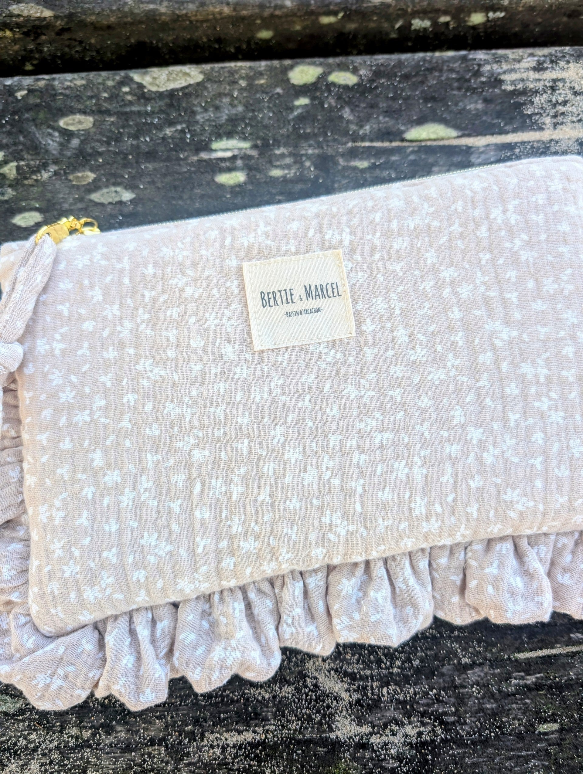 Découvrez notre magnifique pochette à volants ! Son design ultra tendance avec ses petits volants en font l'accessoire parfait pour y mettre votre nécessaire de toilette ou de maquillage. Laissez-vous séduire par son style unique et pratique pour un look toujours impeccable !
