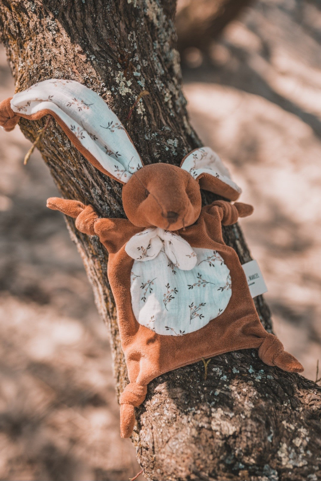 Découvrez le Doudou* lapin, l'ami fidèle et doux qui accompagnera votre bébé pendant de nombreuses années. Avec ses nœuds rappelant le cordon ombilical, il rassure et apaise votre bébé tout au long de la journée. Offrez à votre petit la douceur et le réconfort dont il a besoin.