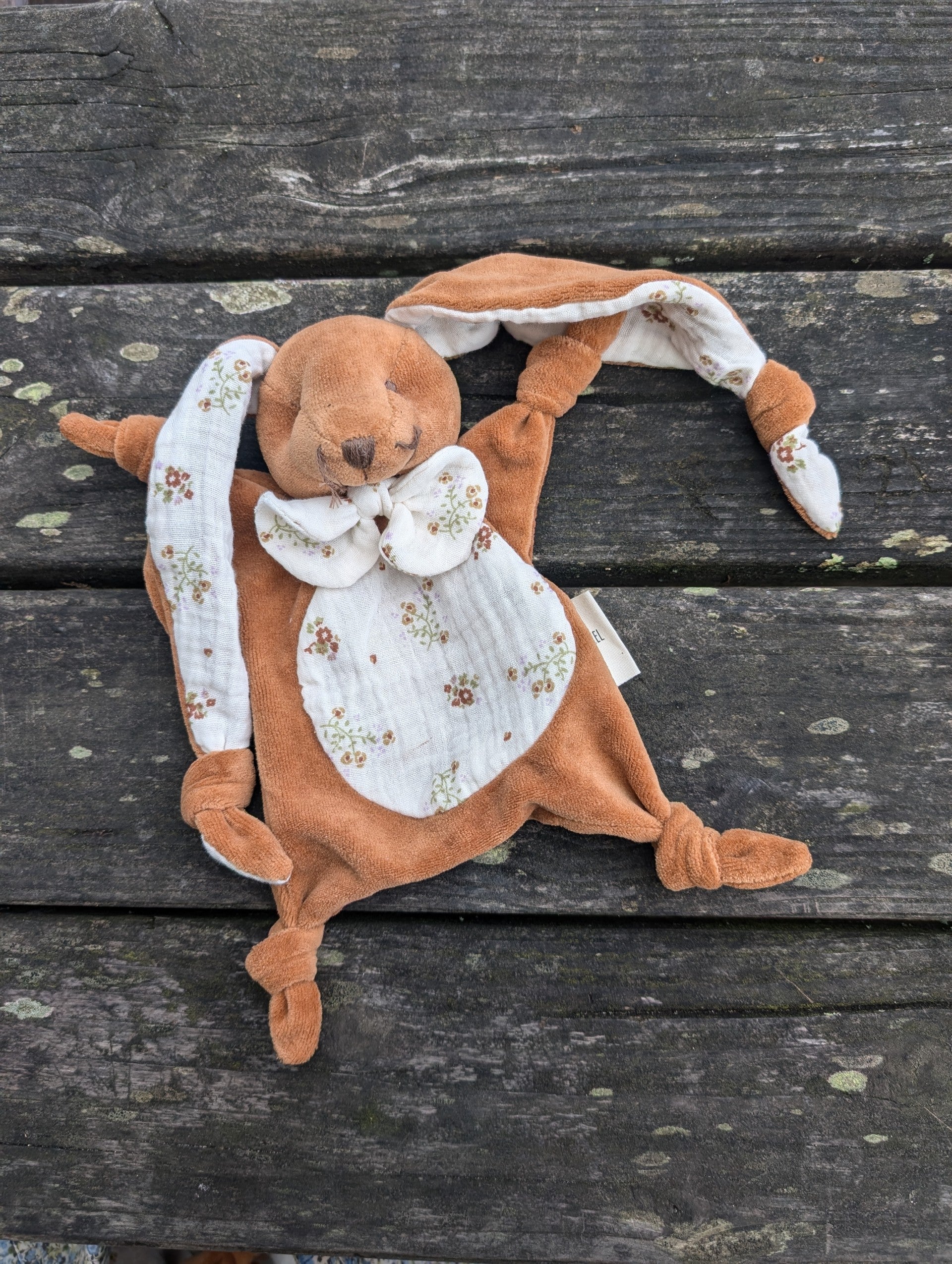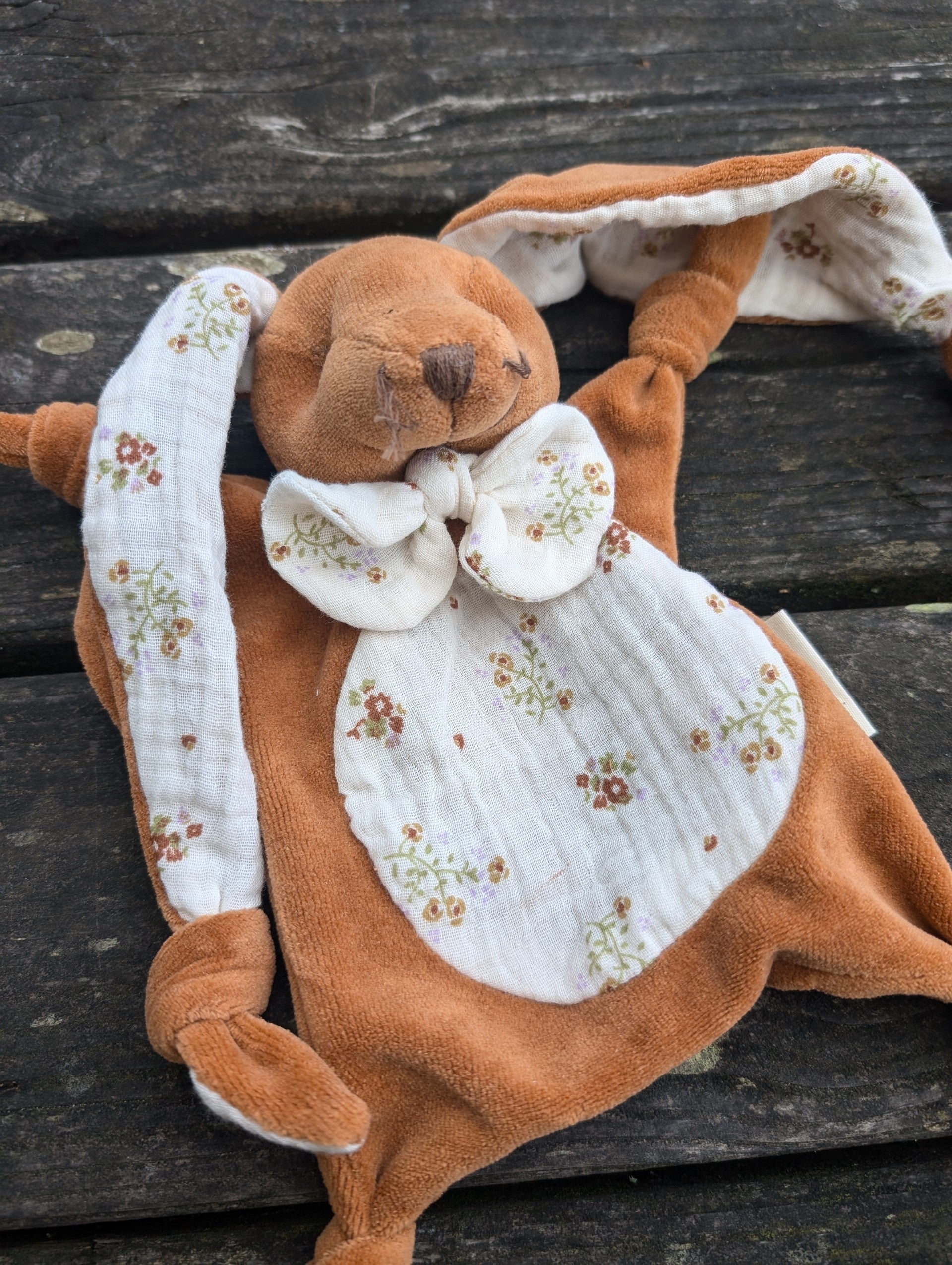 Découvrez le Doudou* lapin, l'ami fidèle et doux qui accompagnera votre bébé pendant de nombreuses années. Avec ses nœuds rappelant le cordon ombilical, il rassure et apaise votre bébé tout au long de la journée. Offrez à votre petit la douceur et le réconfort dont il a besoin.