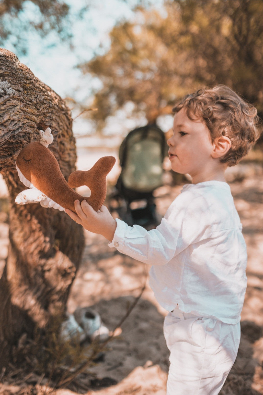 Le hochet* Marcelle la baleine est le compagnon idéal pour éveiller les sens de votre bébé. Ses différentes textures et couleurs stimulent sa vue et son toucher, tandis que ses sons amusants éveillent son ouïe et sa curiosité. Fabriqué avec des matériaux sûrs et de qualité, il garantit des moments de jeu et de développement en toute sécurité pour votre bébé.