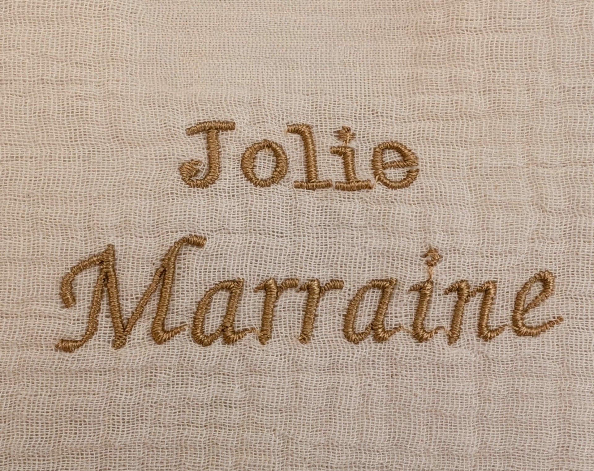 Offrez un cadeau unique avec notre pochette "Jolie marraine" en gaze de coton volantée où se cache un joli message. Parfait pour annoncer un heureux évènement, cette pochette sera un souvenir précieux et original. Commandez dès maintenant pour faire plaisir à votre proche !